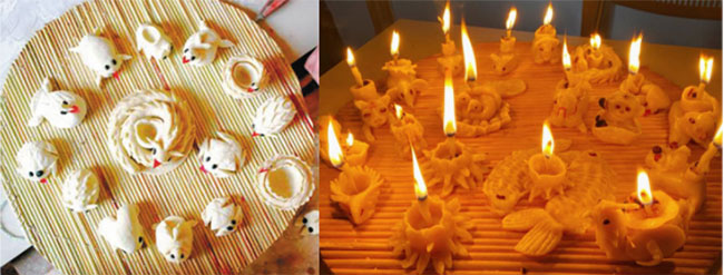 較有特色的是一種面燈,蒸大包子時專門蒸制的,徐州一帶,面燈最負(fù)盛名.多蒸成十二種屬相或標(biāo)志十二個月的面燈.里面放些豆油(香油更佳),另用新棉花做燈捻(芯),晚間點燃后,每個房間都會放一盞,老年人會端著面燈,照遍里里外外,寓意對新的一年美好的祈愿。節(jié)日的晚上,兒童多持(或拉著)帶音樂的玩偶燈、紙燈、面燈游玩;遠(yuǎn)觀煞是好看;油燃盡后,面燈也烤得黃黃的,食來脆香可口。