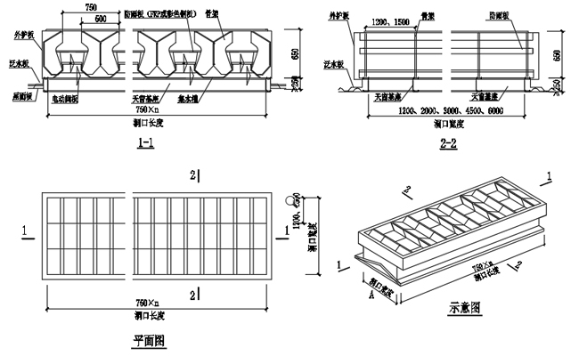 3. 通風天窗側面外護板為彩鋼壓型板,泛水包邊板用彩鋼板折彎而成。